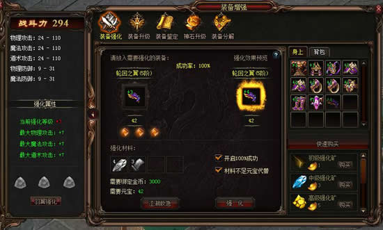 羽翼还可以像普通装备一样进行强化,获得更强悍的属性加成: