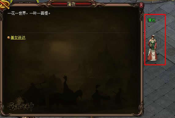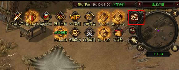 1) 玩家等级达到35级以上,就可到镇北沙漠找到“蒲纱”NPC进行美女护送活动。亦可就可以在主界面的右上角点击“玩”按钮,进入“活动玩法”界面